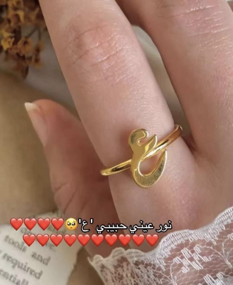 خاتم الاناقة والجمال بين يديكخاتم ناعم بالحرف الجميل0.1 مطلي بالذهب عيار 212. مصنوع من الفضة المطلية3. تصميم بالحرف العربي أو الإنجليزي حسب طلبك4. ضمان ثبات اللون5. المقاسات فري سايز سهل التحكم فيه
