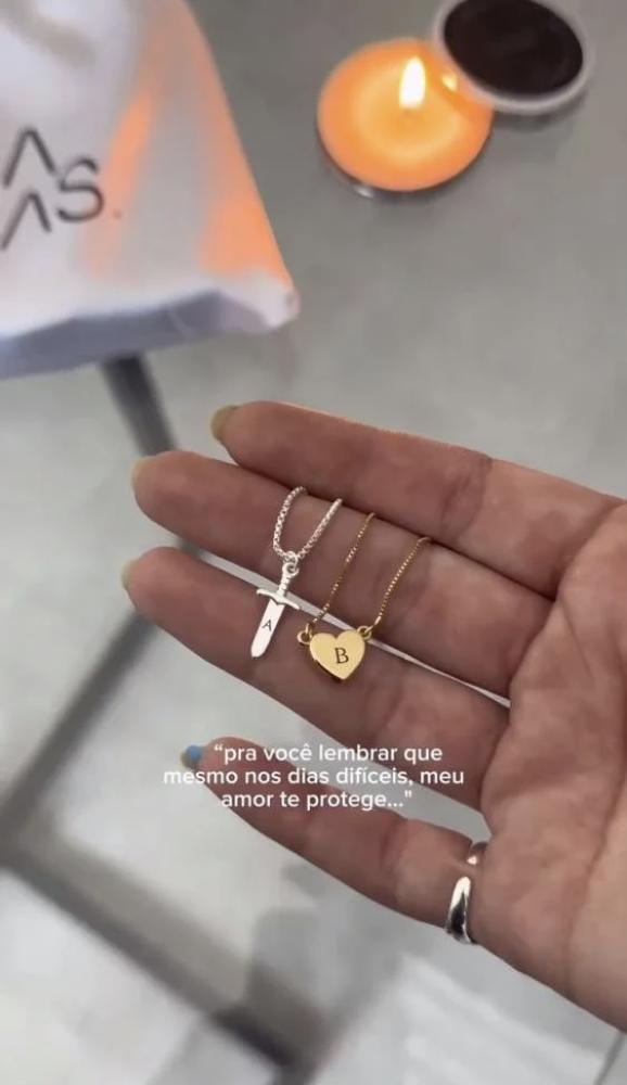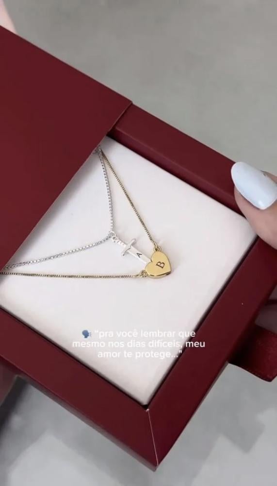 يتكون البكج من سلسالين بتصميم قلب وسيف أنيق.