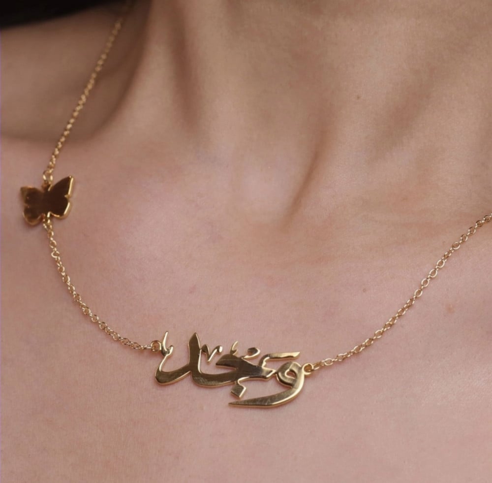 سلسال بالاسم مع اضافة فراشة لتزيد من السلسال جمالاً أهدى بالاسم.