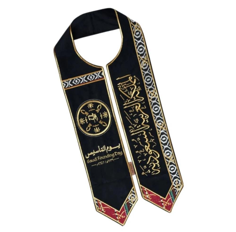 وشاح يوم التأسيساحتفل بيوم التأسيس مع وشاح متجر وايفر الفخم , المزين بنق القماش قطيفه درجه اولى تطريز لون ذهبي مقصب ياباني
